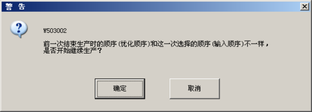 (4) 改变基板生产条件顺序(输入顺序和优化顺序)继续生产时,则会显示确认变更顺序的信息。