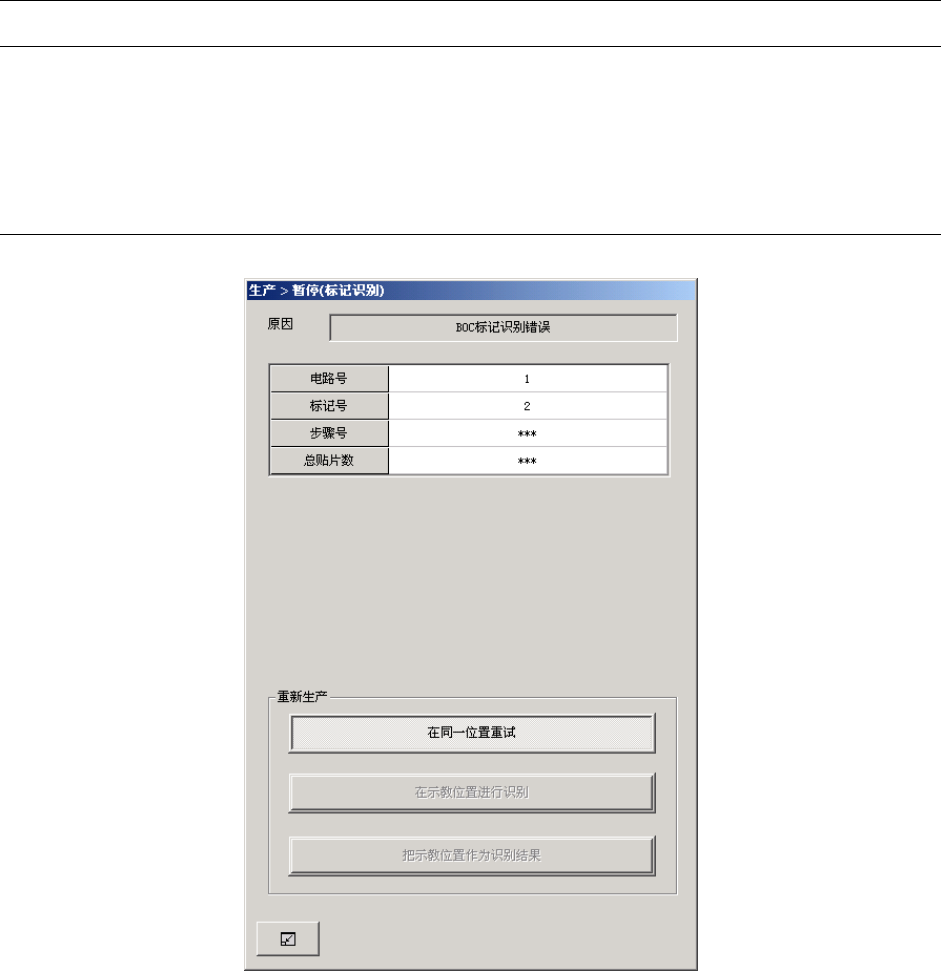 如果在 BOC 标记、基准领域标记的识别中发生识别错误,则会暂停生产并显示以下图像。
