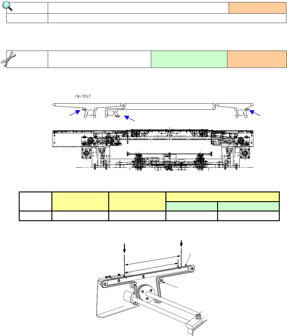 第 1 部 基本篇 第 3 章 维护 3-17 1) 用手动控制模式开动传送马达,检查滑轮旋转是否顺畅。 2) 若旋转不顺畅、或不旋转时,请更换滑轮。 1) 传送滑轮安装在前后轨道板上。 请松开固定螺丝,更换传送滑轮。 2) 更换后,请调整传送带的张力。 检查项目 ・ 3-2-8 传送滑轮 实施频度 : 每周 检查内容 检查传送滑轮的动作 更换 更换传送滑轮 使用工具: 螺丝刀、扳钳 更换标准 : 旋转不良时 レールプレート プーリスペ…