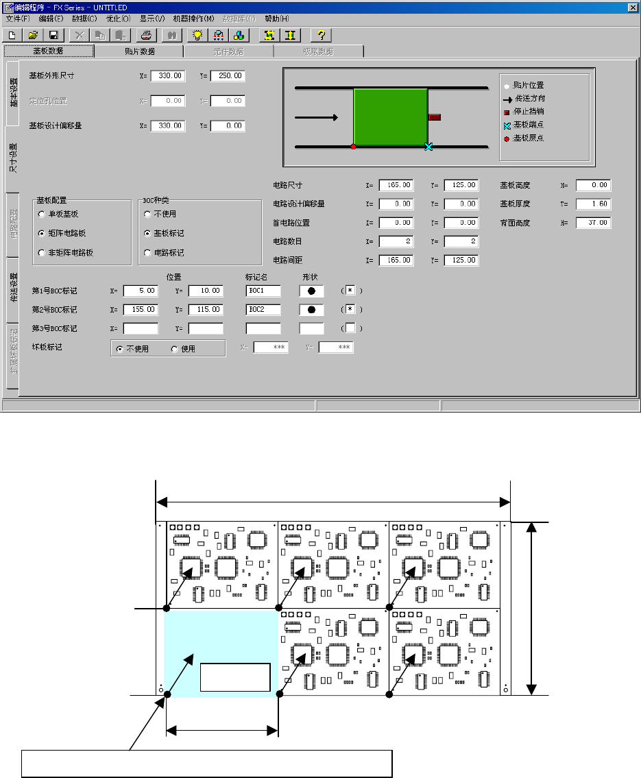 然后设置基板位置基准(原点)和电路原点(为贴装基准电路的原点),输入电路数和电路间