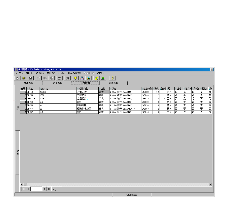 “元件数据”,是针对在“贴片数据”中输入的“元件名称”输入详细的信息数据。