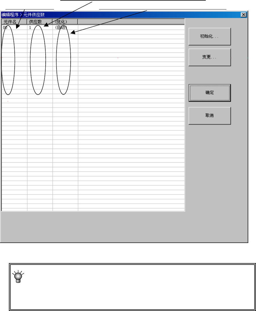(2) 显示如下元件供应数画面。