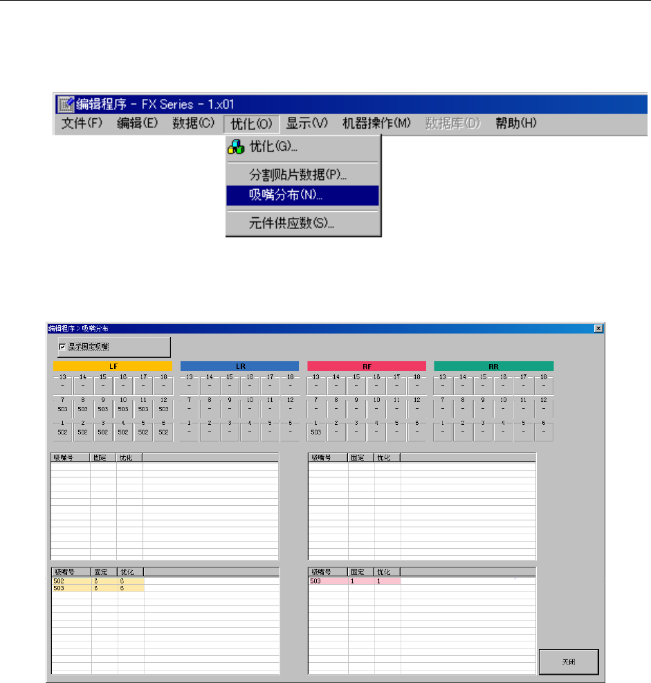 请从菜单中选择“优化”/“吸嘴分布”。