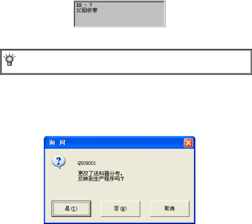 编辑后关闭送料器分布画面时,会显示下列信息,询问是否把编辑内容反映到程序数据中。
