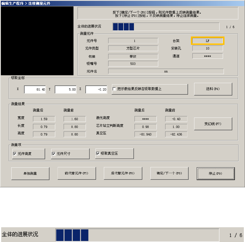 连续测量过程中显示如下画面。显示连续测量的元件内容及吸取位置,依次显示处理内