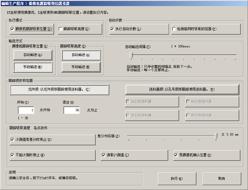 另外,从菜单栏中选择“机器操作”/“跟踪”/“跟踪吸取高度”,会显示如下画面。