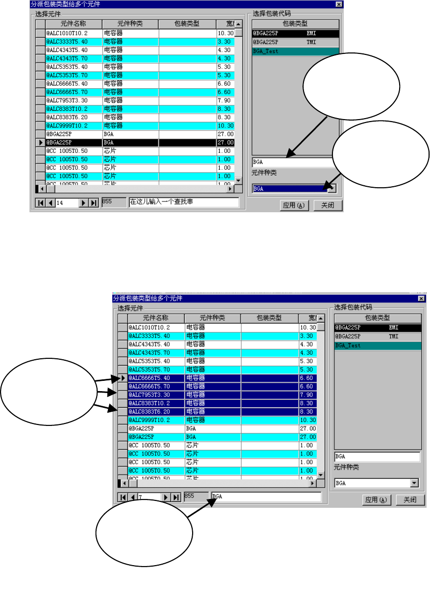 (3)在“元件清单”表上选择多个元件数据。如已知元件名时,输入所要查找的元件名的头