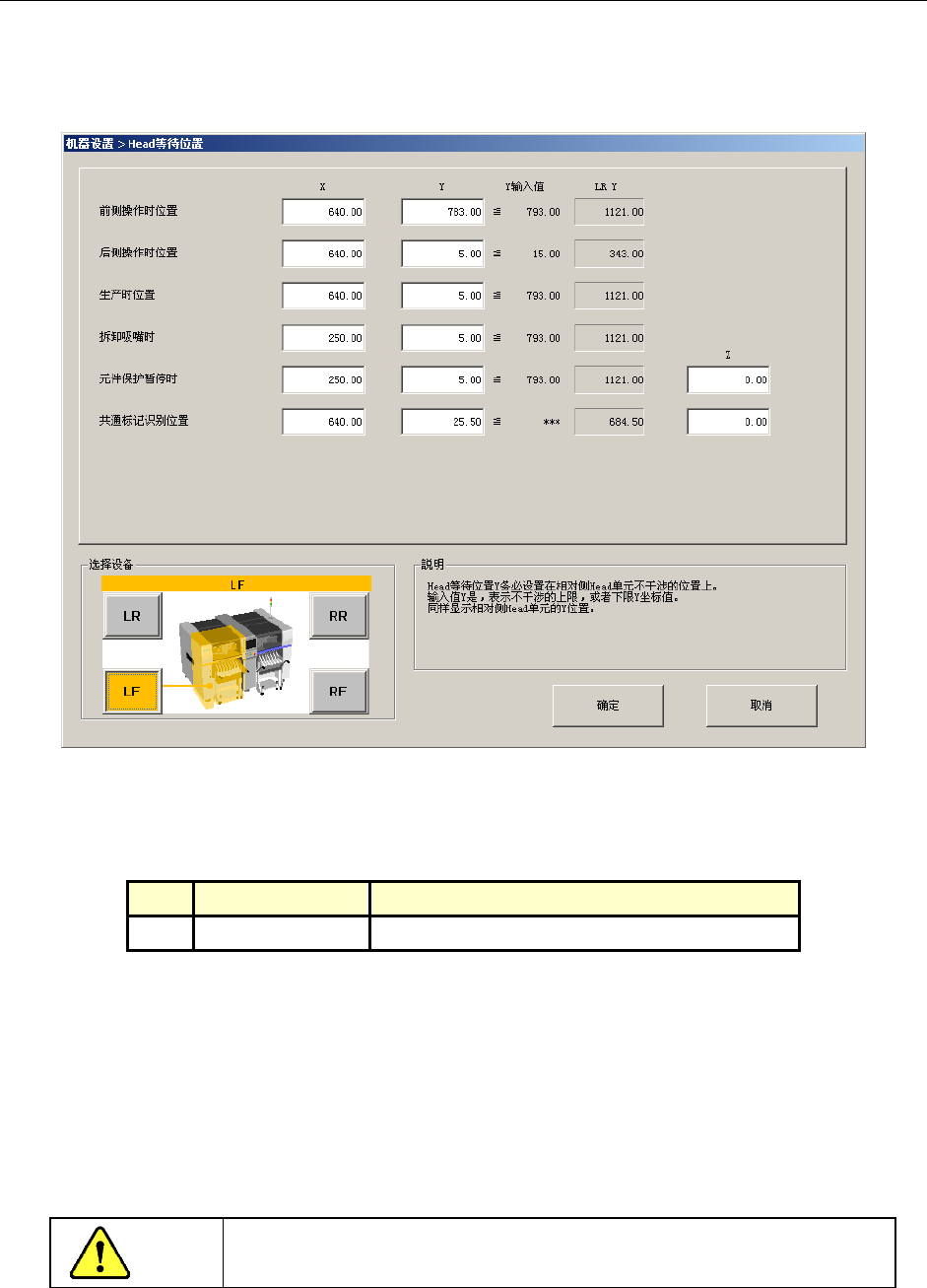 选择 Head 等待位置后,可显示如下 Head 等待位置设置画面。