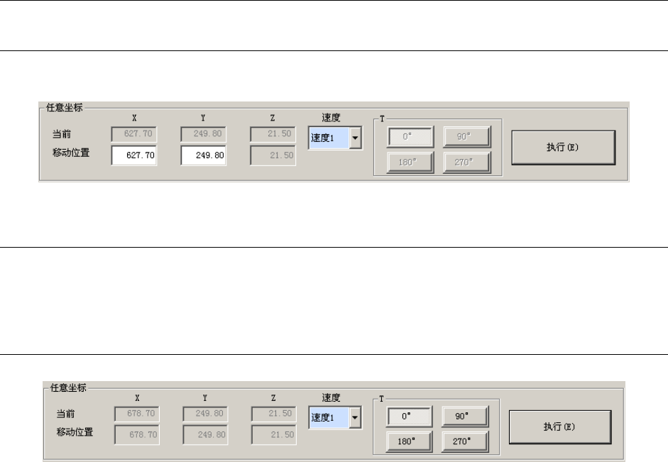 选择要控制的轴的种类“XY 轴控制”、“Z 轴控制”,按下“执行”按钮,即可把轴移至任意的指