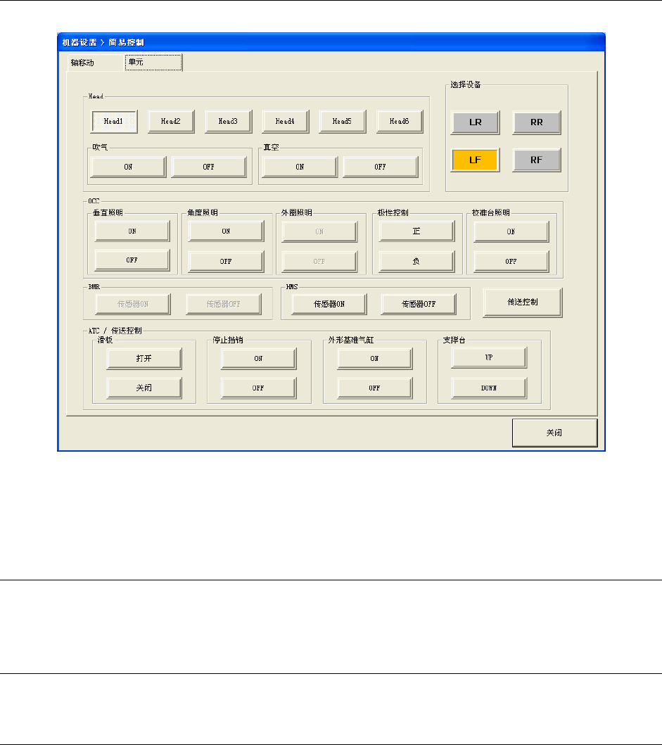 可对指定的 Head 单元的真空、吹气、 OCC、 BMR、 HMS、 ATC、传送控制,进行控制。