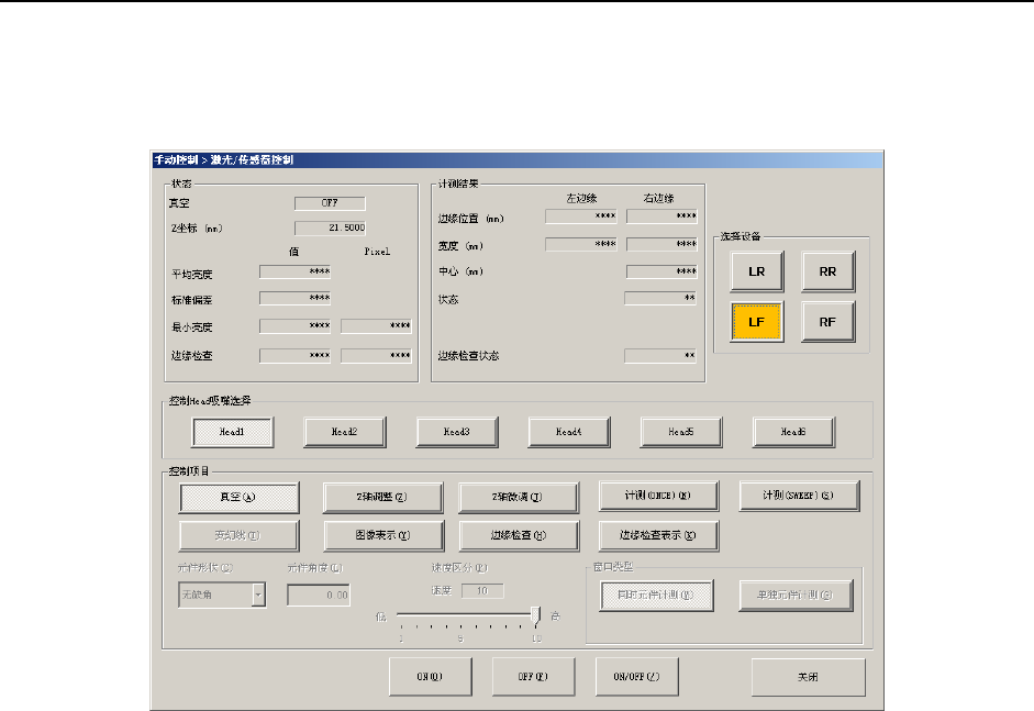 从下拉菜单中选择“Head(H)”-“激光/传感器控制(L)”或选择命令按钮的“激光/传感器控制”,