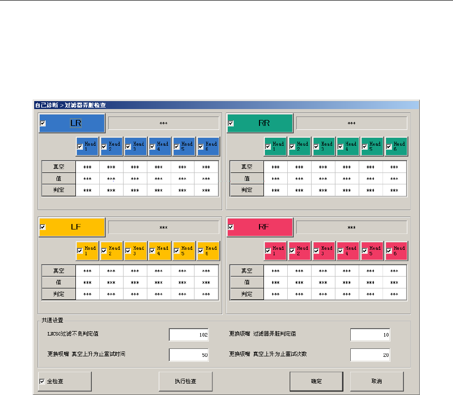 指定送料器台架或贴片头,按下[执行检查],执行过滤器弄脏检查。