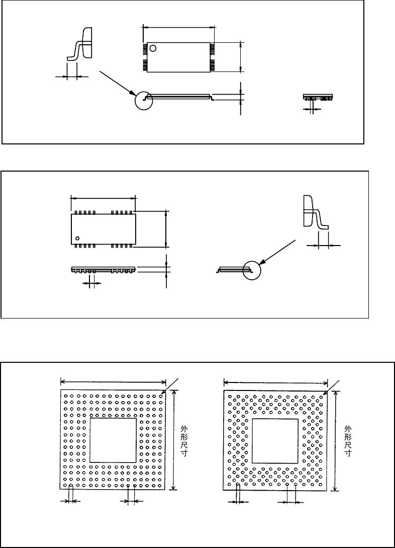 第 2 部 功能详细编 第 13 章 程序补充 13-4 · QFJ(PLCC) · BQFP(PQFP) 外形尺寸 横 外形尺寸 纵 元件高度 引脚间距 外形尺寸 横 外形尺寸 纵 元件高度 引脚长度 引脚间距 引脚长度