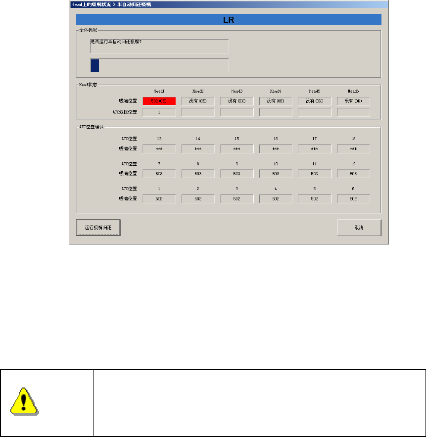 Step1: 在“在 Head 上的吸嘴状况”画面中,按“半自动归还吸嘴”按钮。