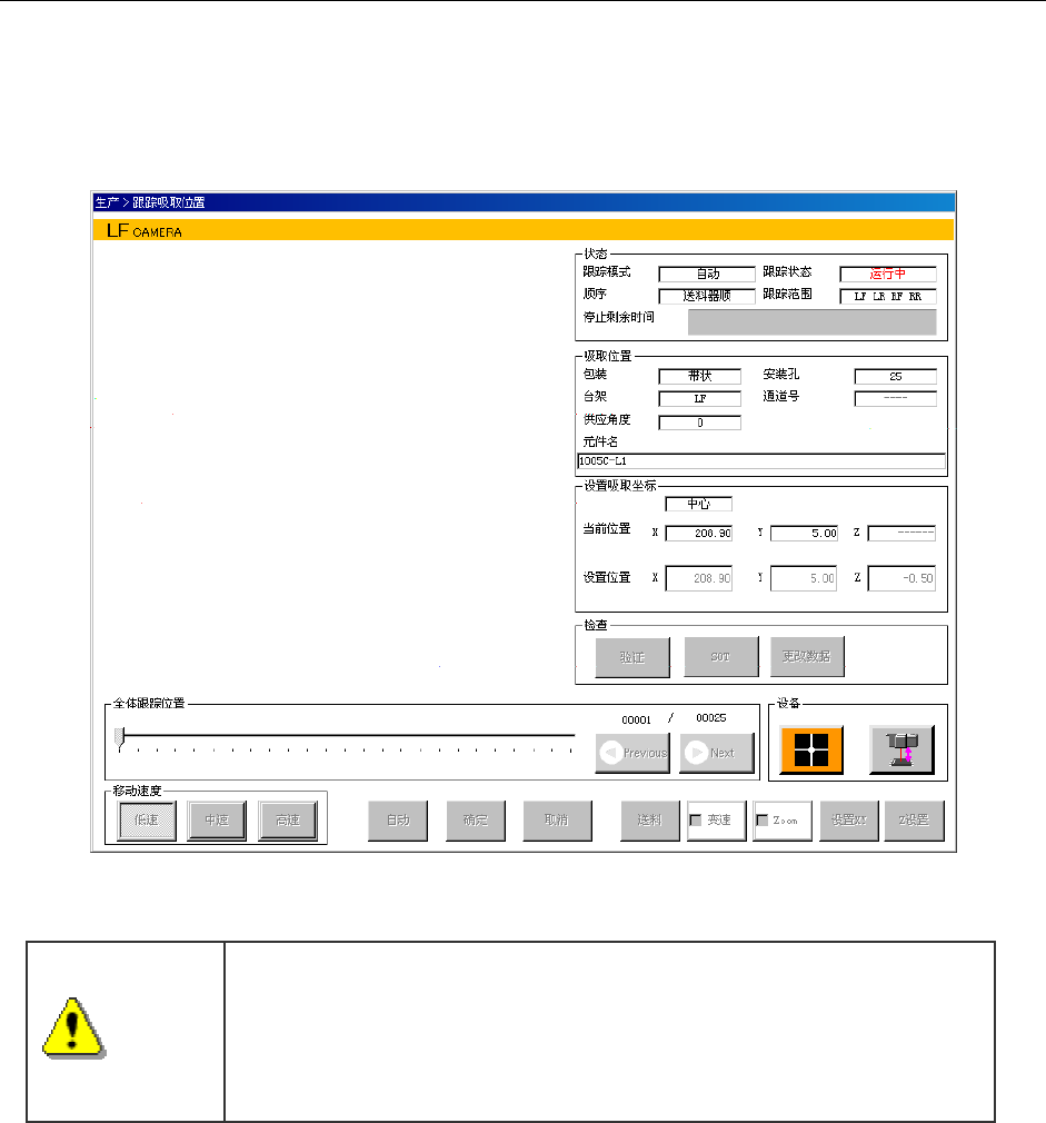 在打开吸取跟踪画面以前,为进行台架标记识别,轴将会移动。