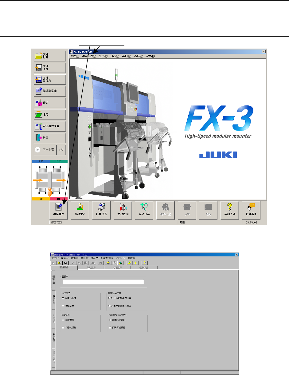 在启动编辑程序后,制作新程序时、或者通过制作新程序以外的途径进入时,显示如下画面。