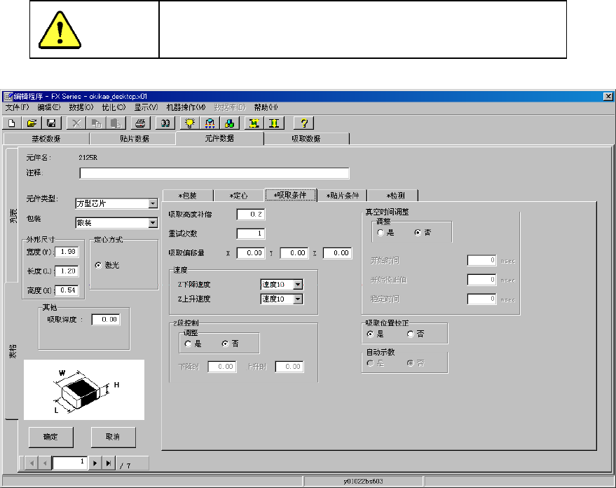 图 4-3-5-2-4-1 元件数据(吸取条件)