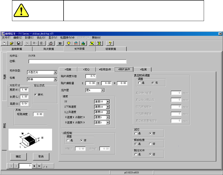 图 4-3-5-2-5-1 元件数据(贴片条件)