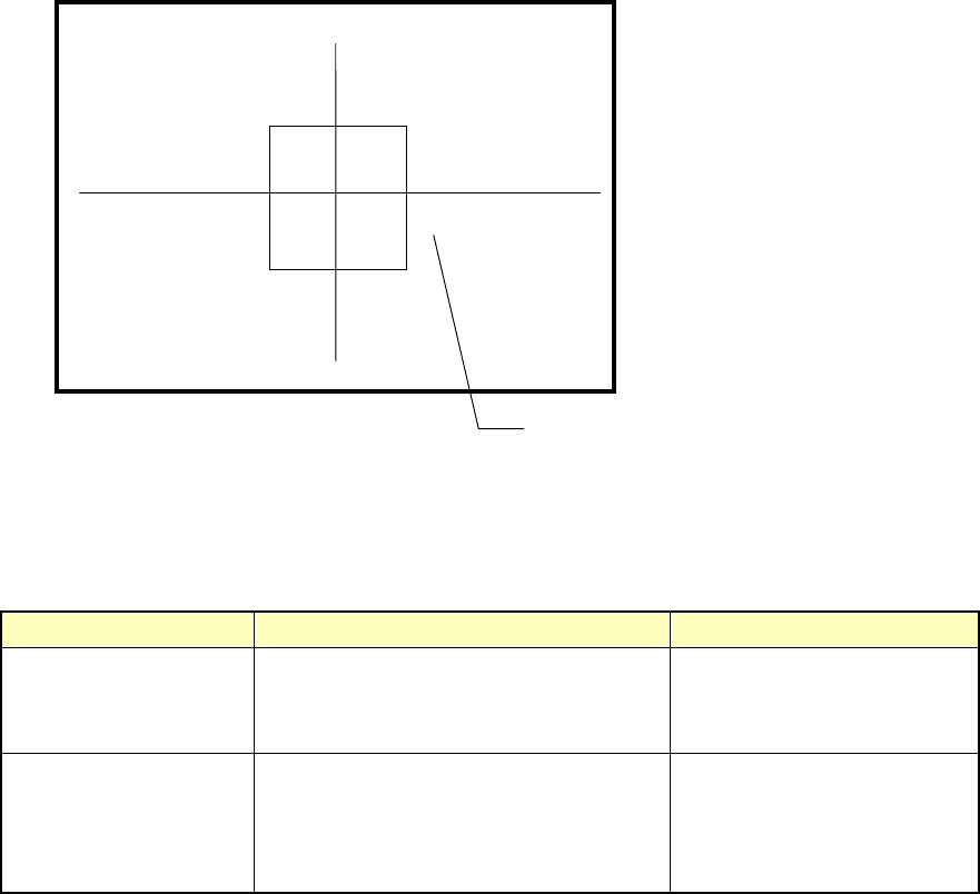 元件尺寸不同,在监视器中显示的元件中心及四角的各有不同,详见下表。