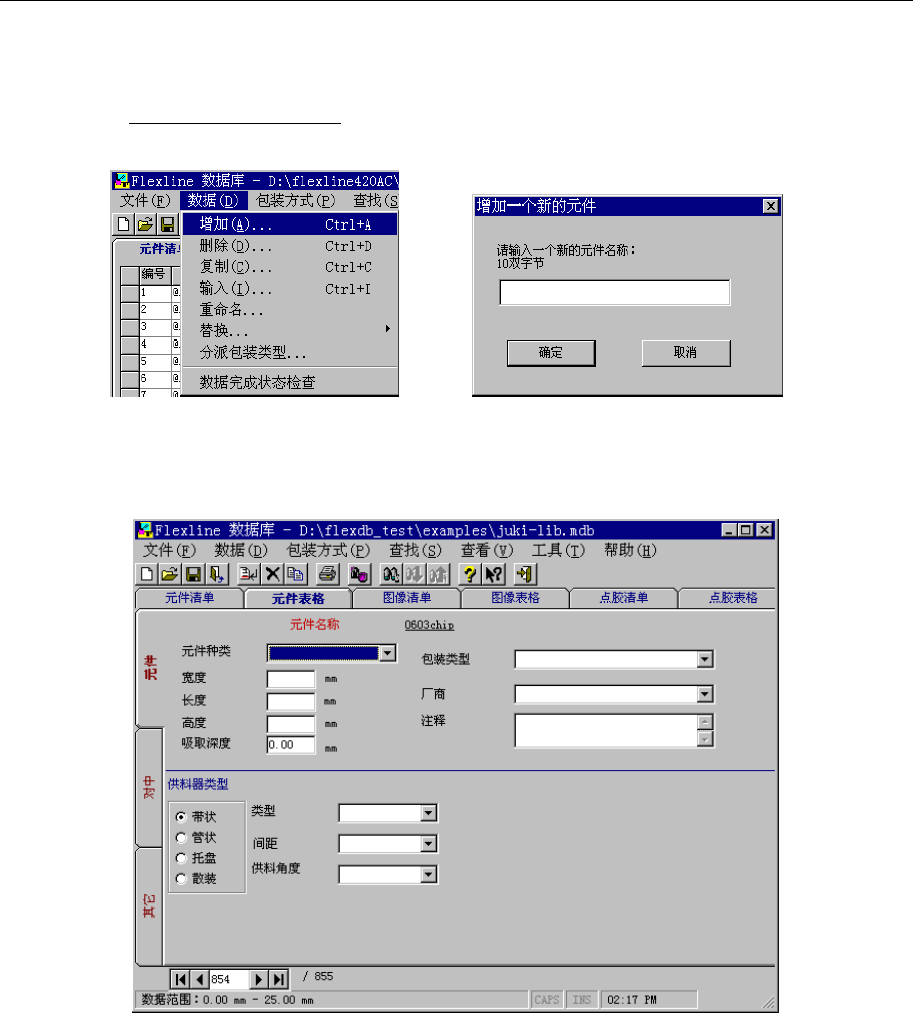 图 5-3-1-1-a,b 菜单栏、新建元件名输入画面