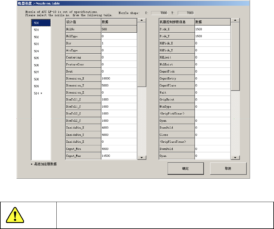 会显示图 7-4-1-4 吸嘴信息未注册画面