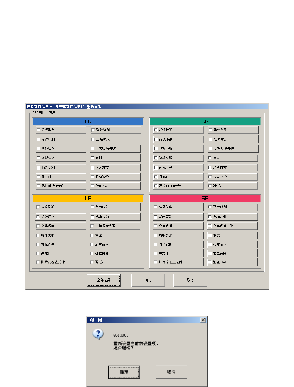 ・ 在“重新设置询问信息”上按“确定”后,可对 LF、LR、RF、RR 各组的吸嘴的对应项目