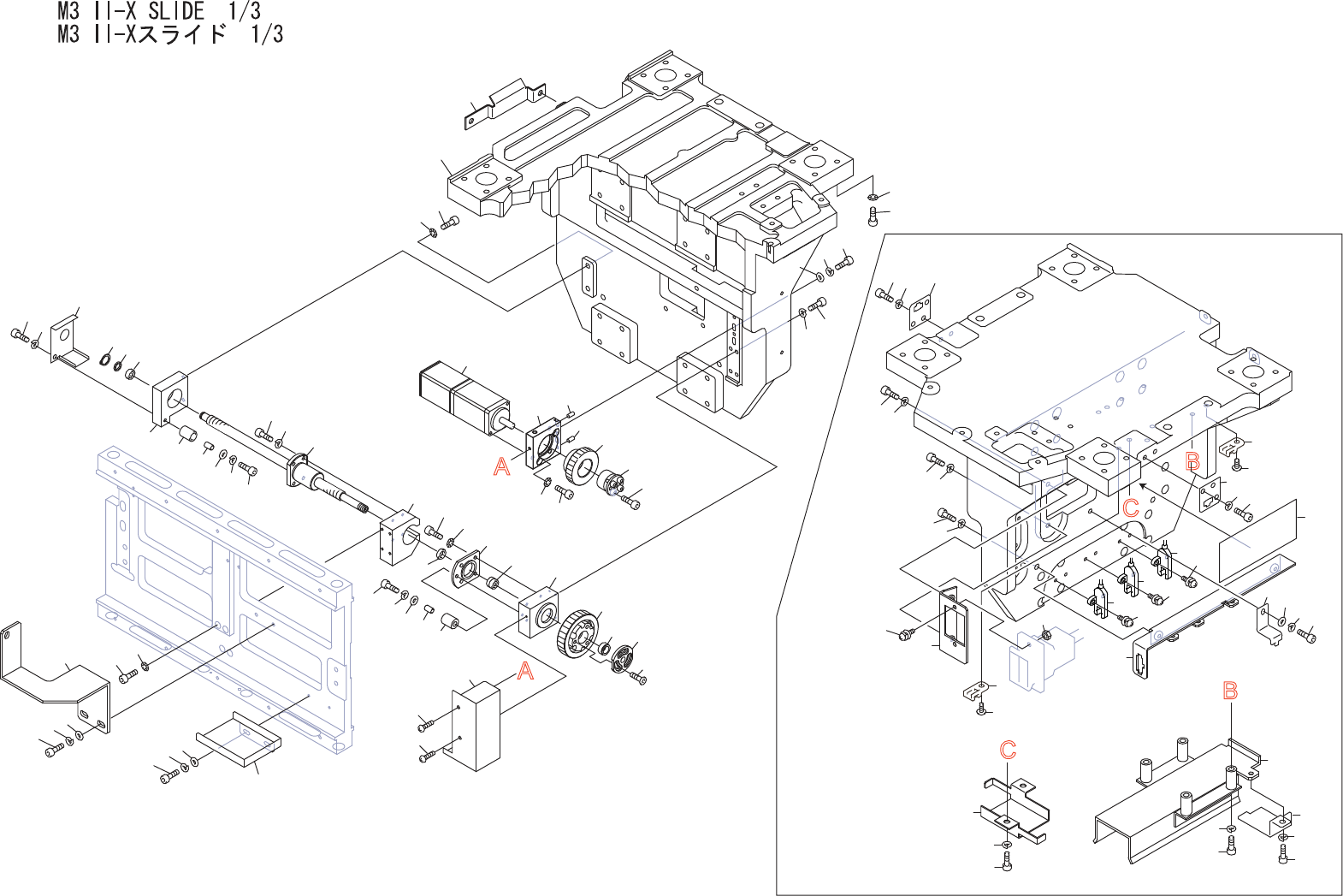 M3II-XSLIDE1/3 M3II -Xスライ ド1 /3 QK02X04 No. Drg.No.&CodeNo. Q TY Description Rating Materials Remarks 番号 図番 &コード 番号 個数 品名 規格 材質 備考 1 PT01725 1 SLIDE,Y-AXIS スライ ドY 軸 OT 2 H5289A 16 BOLT,HEXSOCKET …
