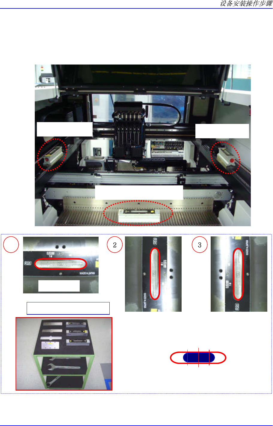 3. Y1, Y2 轴 L/M Guide 顶面和前面喂料器座顶面上放置水平仪,调节水平,公