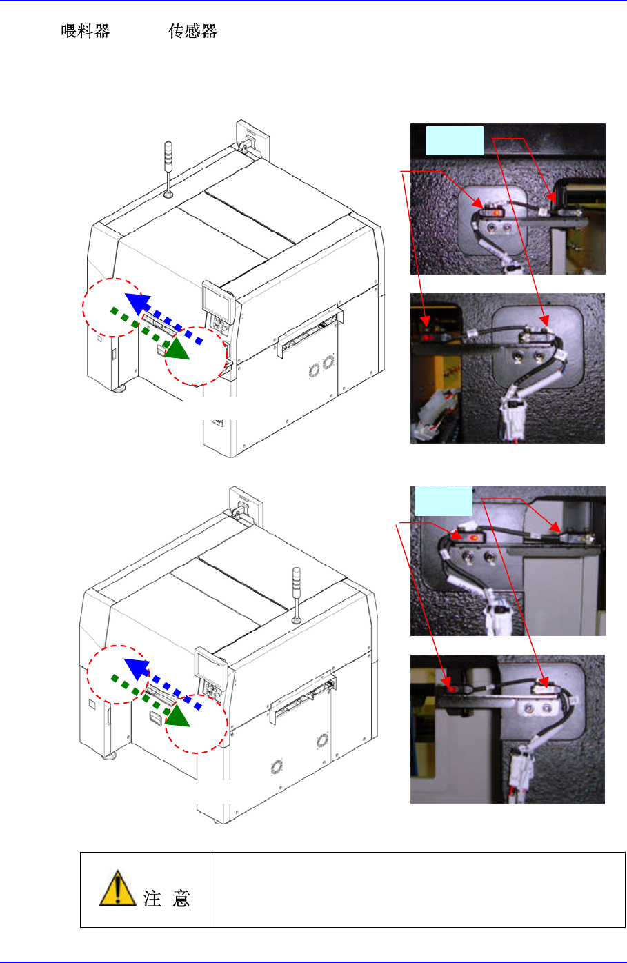 安装在本设备前后面的Feeder没有正确安装在Feeder座时,设备就处于紧急停止状