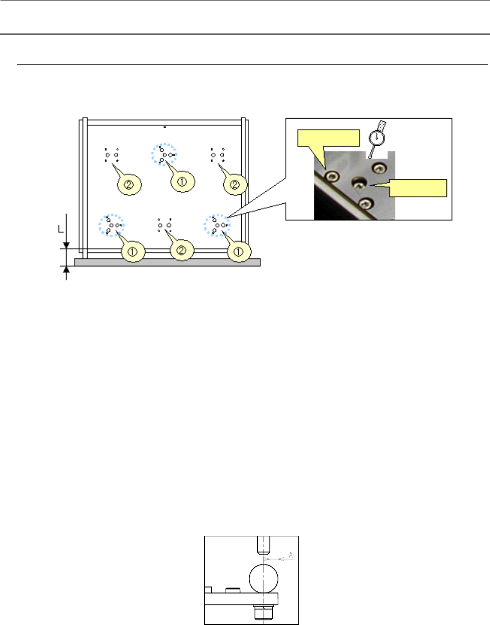 ※ 调整后,请确认轨道导轴与侧梁的中心是一致的(尺寸 A 为 1mm±0.5)。