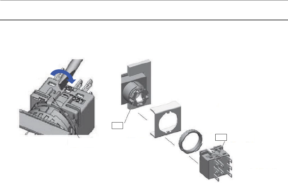 3) 安装方法:拆下锁定螺母,确认橡皮垫圈正常安装后,将操作部从面板前面穿过面板孔。 使