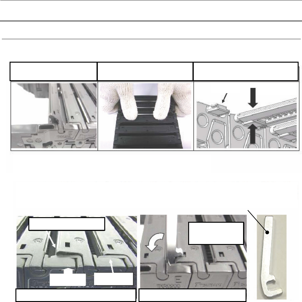 ※ 链板浮起时,请按照片②所示,在链板的左右两端用链板安装工具把链板键的键舌部与链板的连接部牢靠地