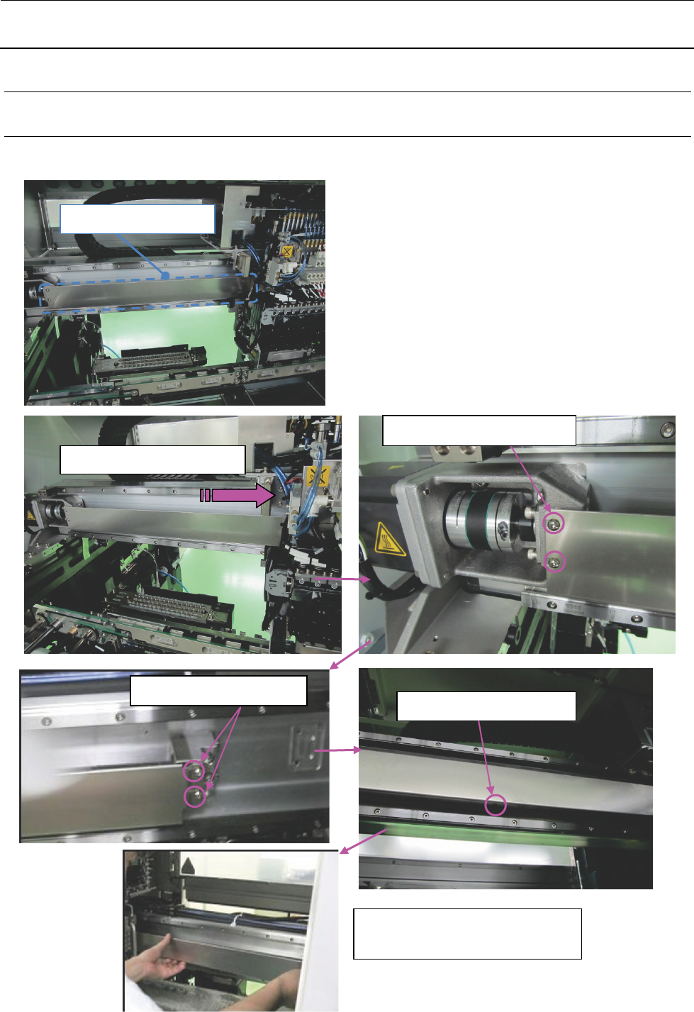 维修调整要领书 1- 30 1- 6 X 滚珠螺杆的更换 1-6- 1 更换 X 滚珠螺杆的准备 ( 1 ) X_OIL_ GUARD _F 的拆卸 将 HEAD_PLATE 向右侧 靠。 拆下 SM3040652TN 2 个 。 拆下 SM3040652TN 2 个。 拆下 SM3030552TN 4 个。 将 HEAD_PLAT E 向左侧靠, 拆下 X_OIL_GU ARD_F 。 X_OIL_GU ARD_F