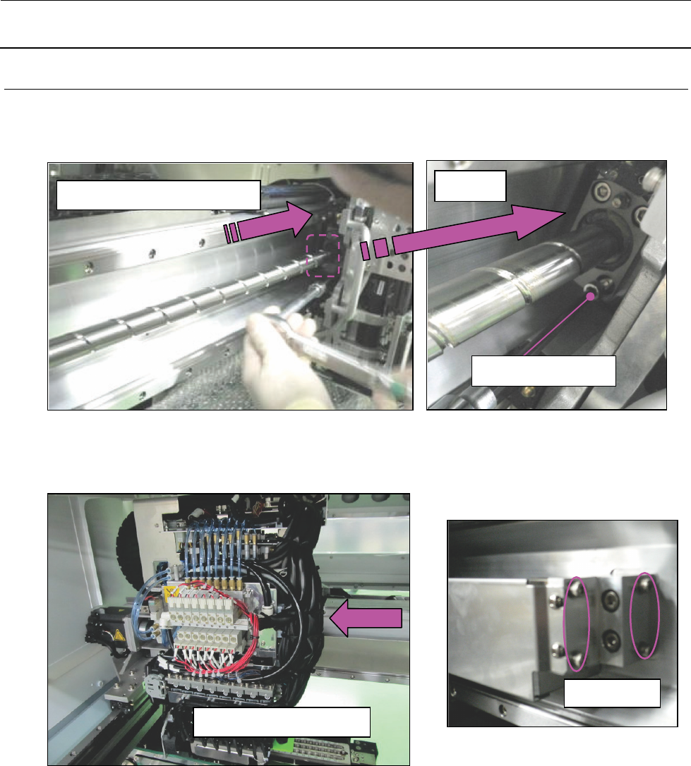 (1)将 HEAD_UNIT 向右侧靠,把 1-6-3(3)中临时紧固的 X 滚珠螺杆螺母部的