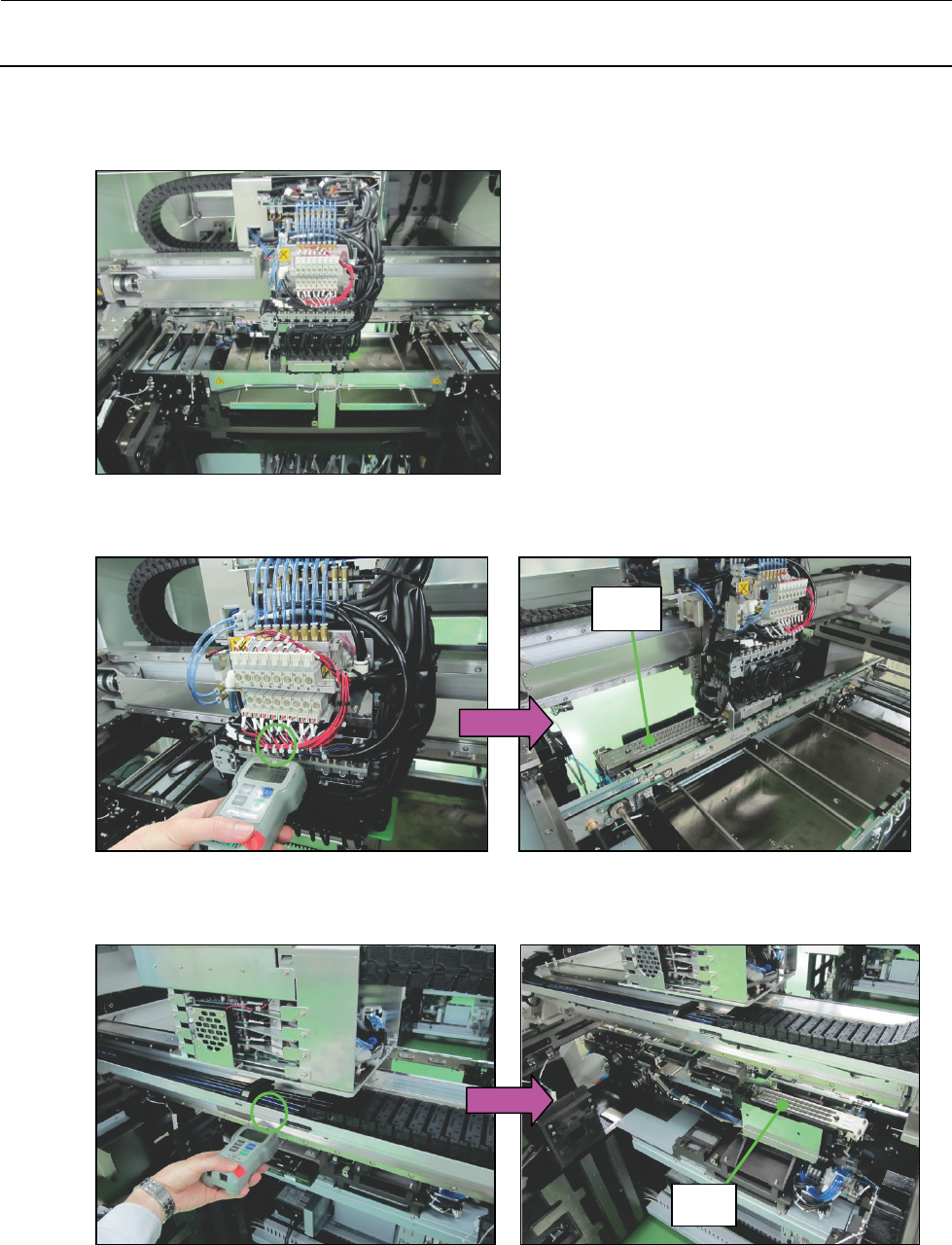 维修调整要领书 1- 56 ( 8 )再来回几次移动 HEAD ,使 X_AX IS_FRAME_ASM 从前侧 Y_STOPPER 移动至触碰后侧 Y_STO PPER ,检查移动是否阻滞。 移动阻滞时,回到 1-7-4 ( 5 )从新调整。 ( 9 )固定 YL 、 YR 的联轴节 _ 螺丝。(紧固扭矩 =7[N ・ m] )。 ② 转动滚 珠 丝 杠 侧 将被固定在上部位置的 联 接固定螺 钉 ①从机械端移 动 X 框至 10mm…