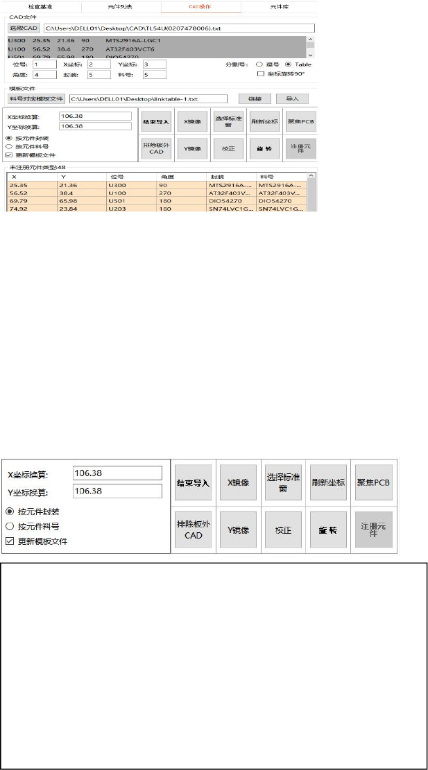 坐标文件内容至少包含 X 坐标、Y 坐标、元件位号、元件角度、元件料号 5 列基本信息,