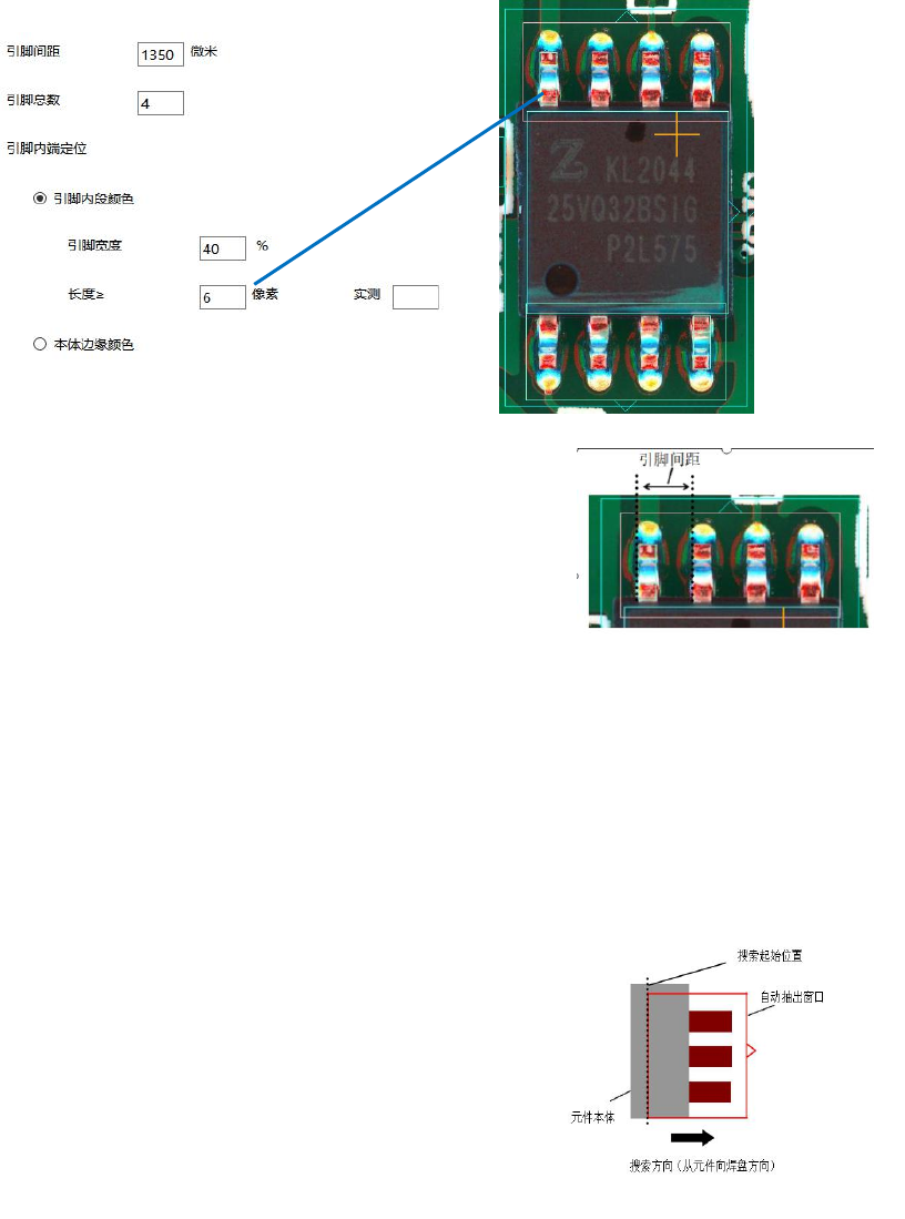 2)IC 范围窗口箭头方向表示元件贴装方向,搜索窗箭头方向由元件本体向外