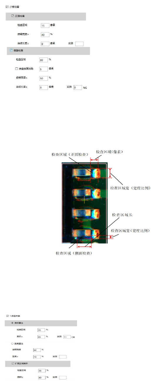 检出焊盘上锡量过少,可以选择正面检查或者侧面检查(与 CHIP、SOT 类型一样)
