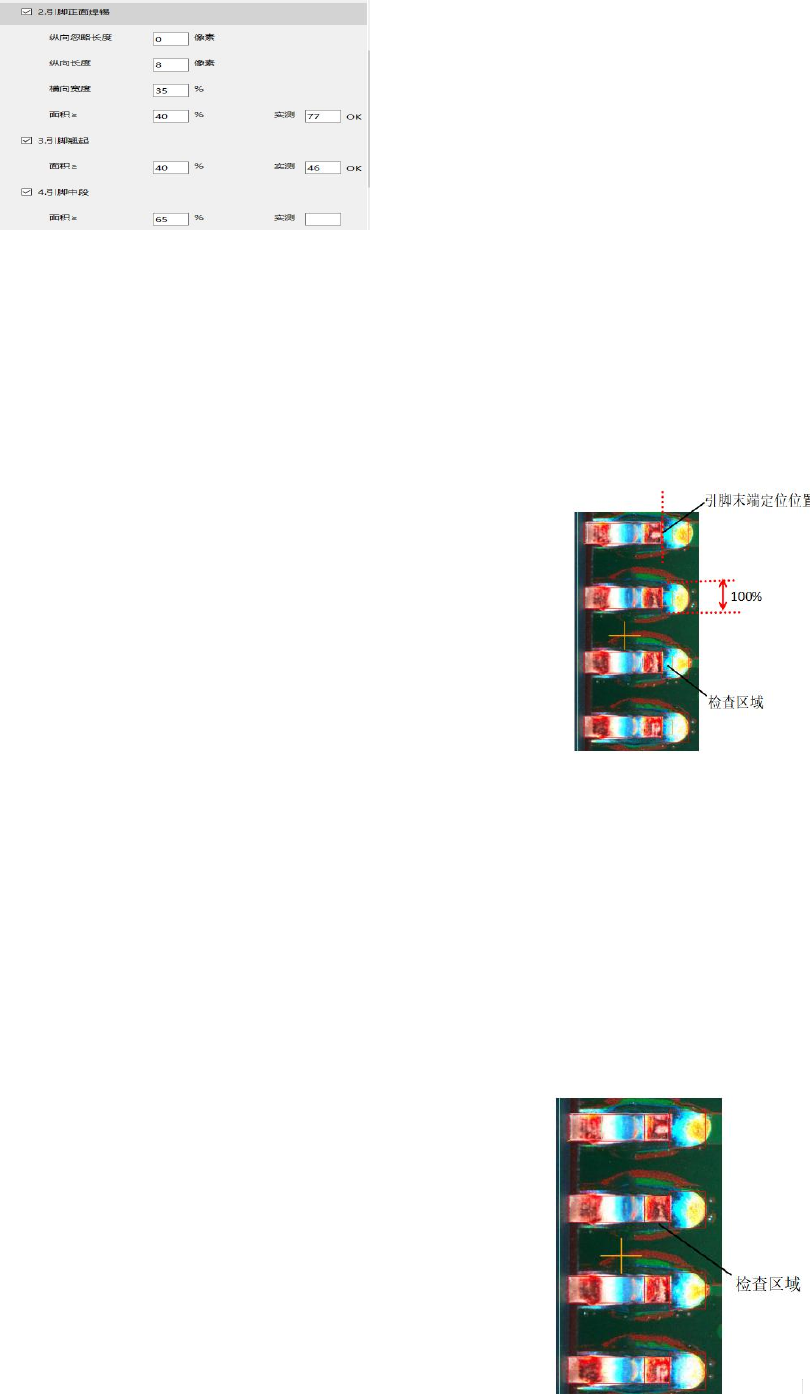 检查区域以引脚中段比例的检查窗为 100%