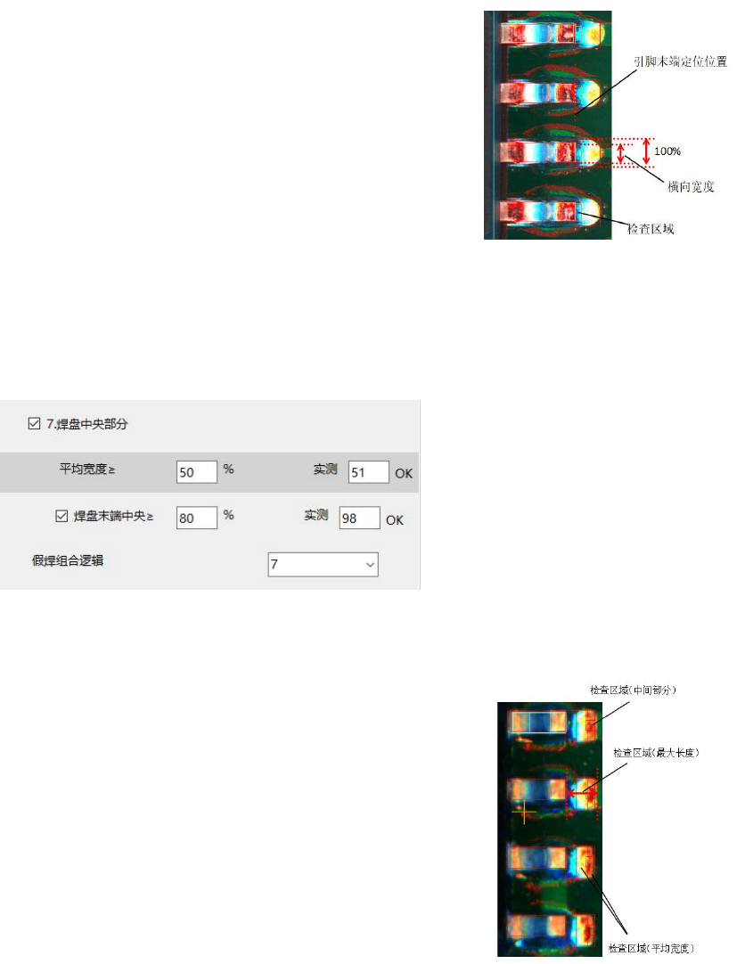 纵向长度:引脚顶端往焊盘末端检查设定的像素
