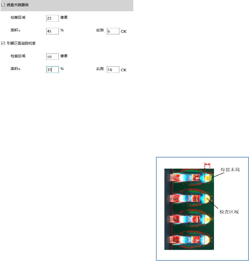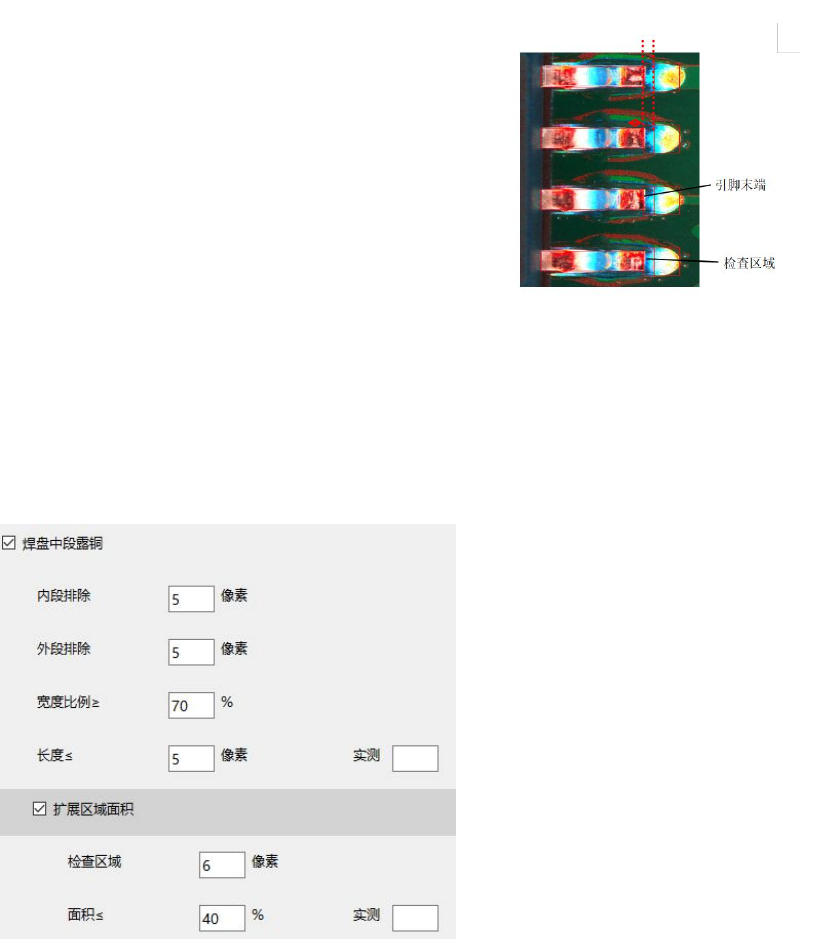 检查区域:从焊盘末端开始往里,设置检查区域像素