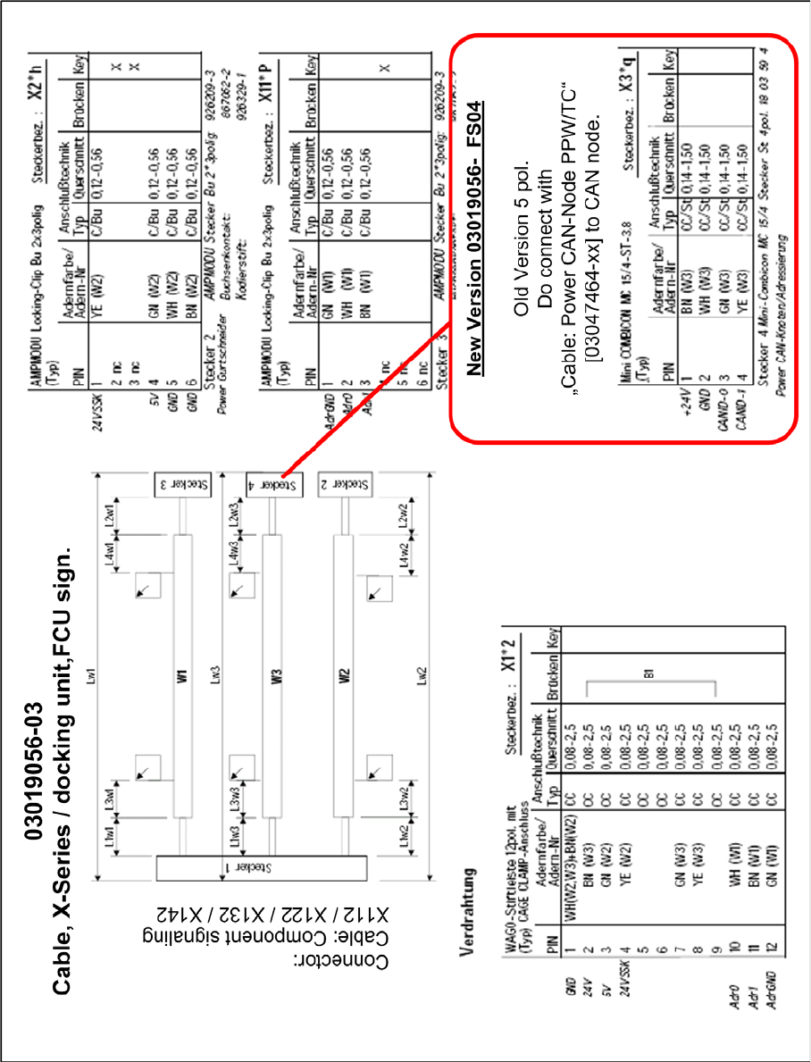 Installation Running the CAN Nodes Option Cable Retrofit Instructions CAN Node X Series SW70x 57 6-16: Cable for component trolley feed-in device (X series) - FCU signalling [03019056-03]