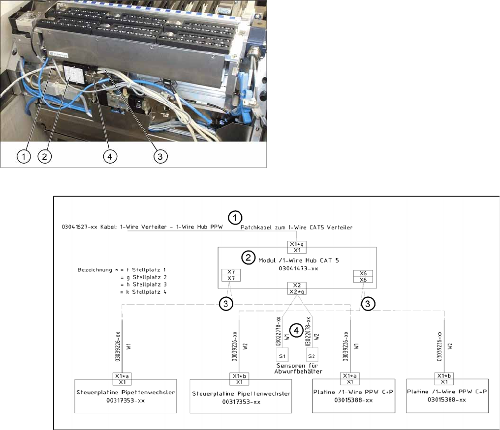 (3) Kabel zum Pipettenwechsler (4) Kabel zur BE-Abwurfbehälter-Abfrage