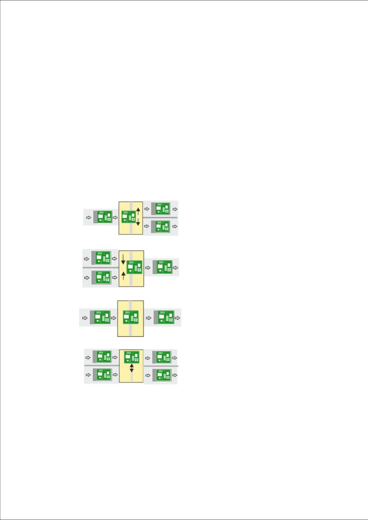 输送机扩展件可以通过不同的传送导轨模式,将 SIPLACE TX 贴片机连接到其他设备 (例如