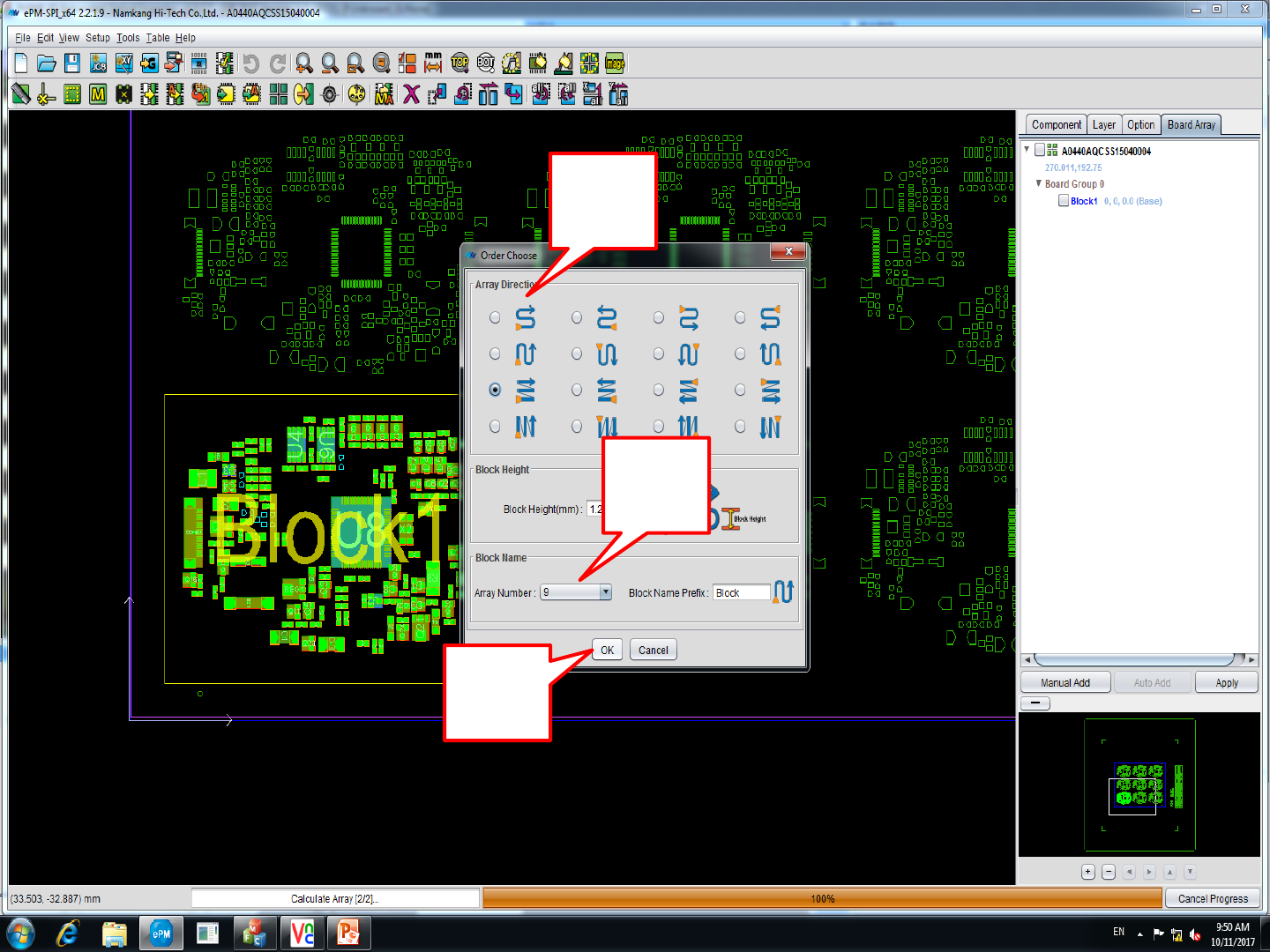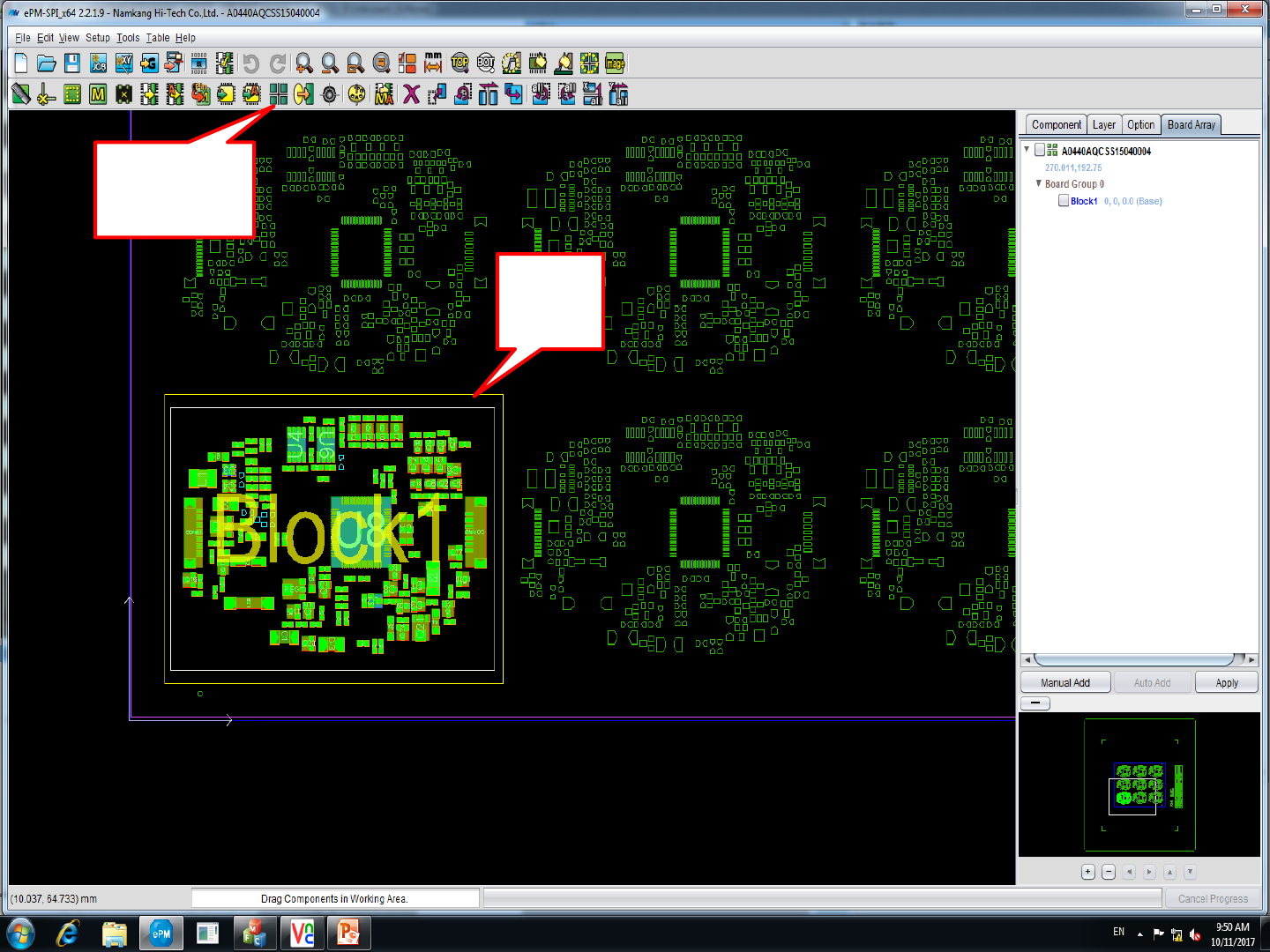 2. 框选 多一点 单板 1. 点击陈列 (连板用)