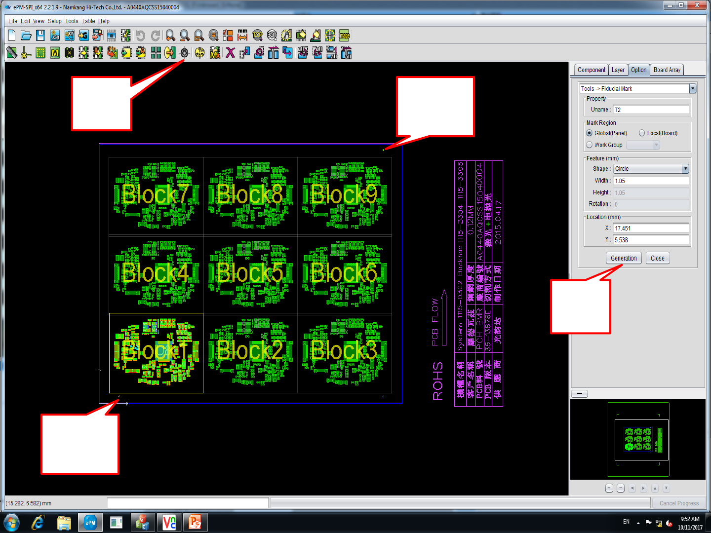 1. 点击制 作 MARK 点 2. 选择第一个 MARK 点后点 GENERATION 4. 选择 MARK 点 后点此处 3. 选择第 二个 MARK 点后点 GENERATION