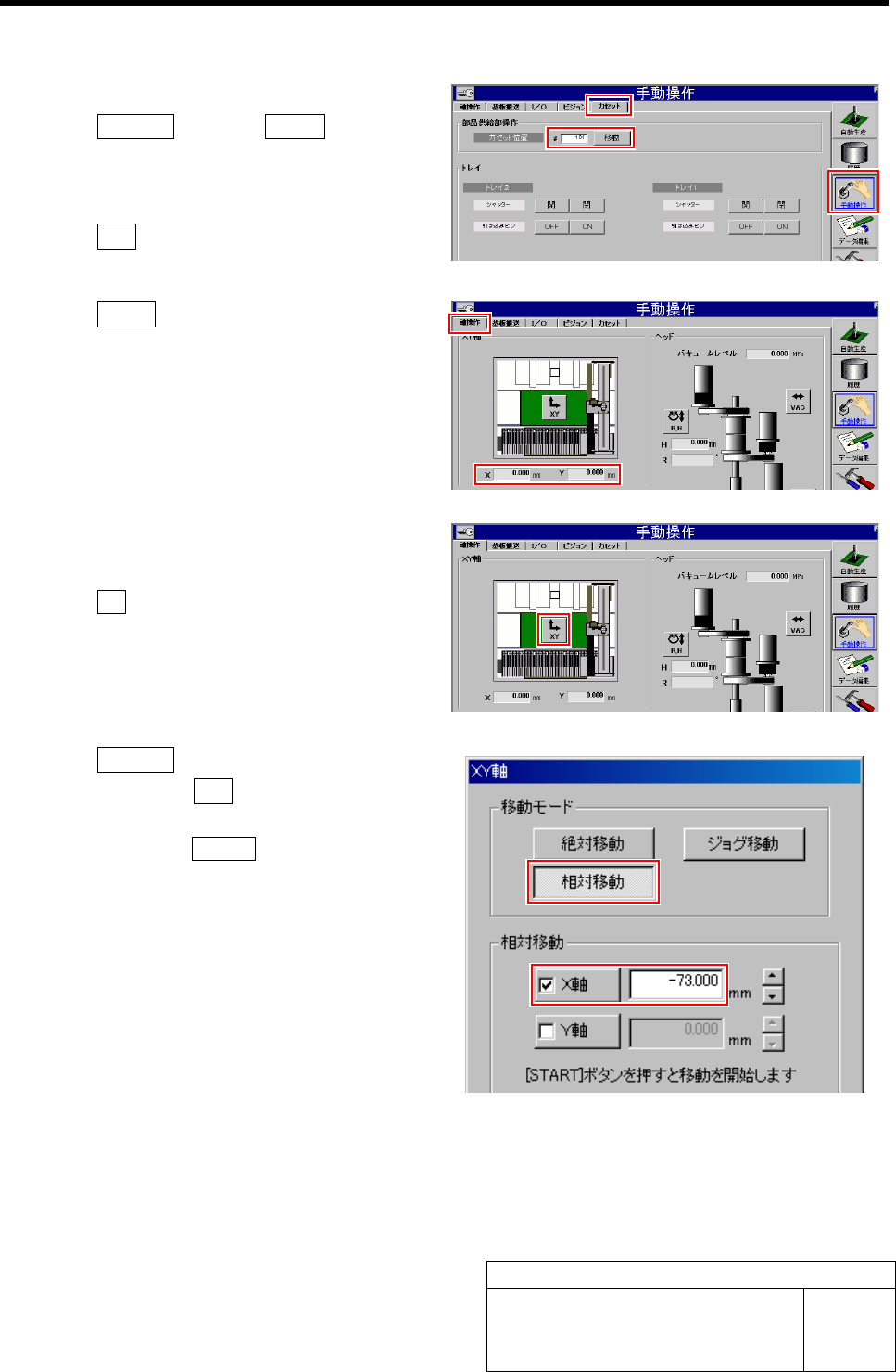 4. X 軸の数値欄に「-73.0」mm と入力して、操