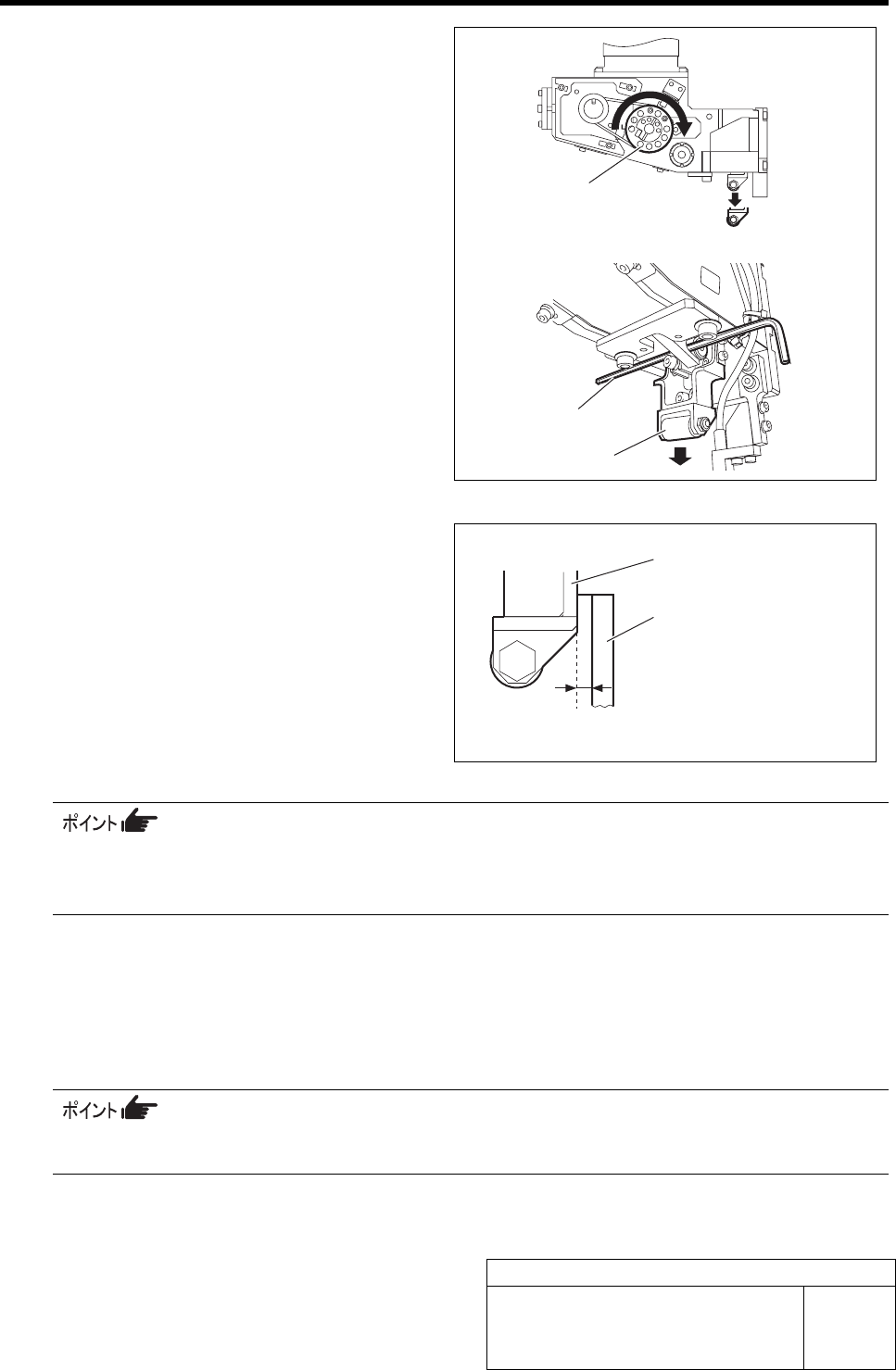 ・ フィード調整冶具が浮いていないこと(t=0.01 mm のシックネスゲージがフィード調整冶具とカセットテー