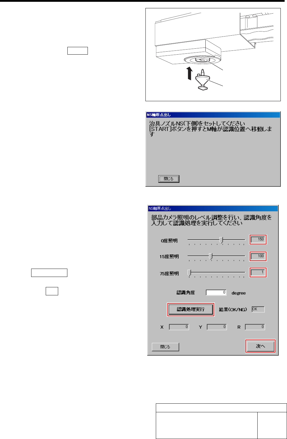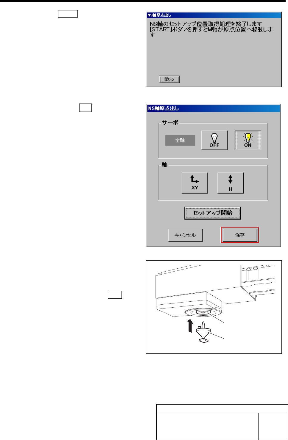 メッセージ画面に“NS 軸のセットアップ位置取得