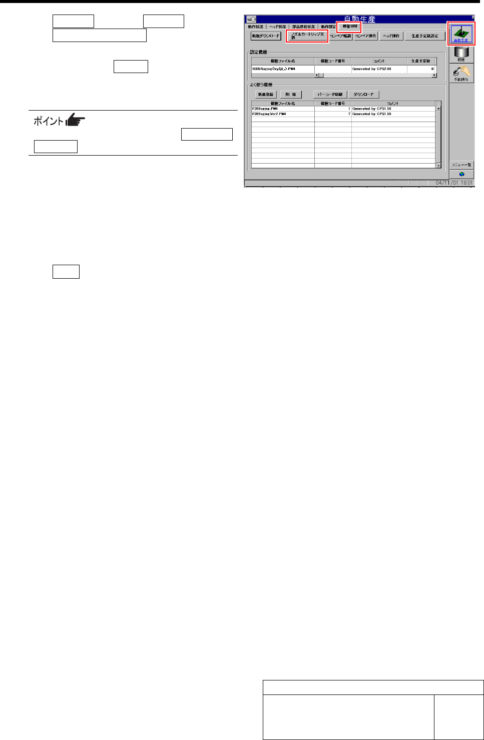 3. 自動生産 メニューÎ機種切替 タブÎ